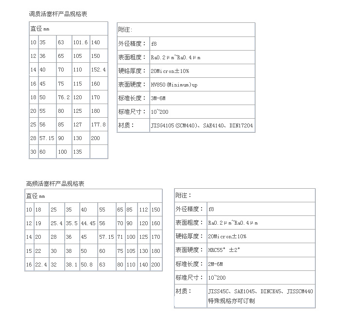特種加工超光滑活塞桿的質量特性:圓度公差符合GB1184 8級;